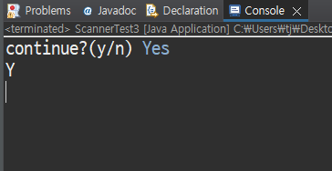 System.out.print("continue?(y/n) ");