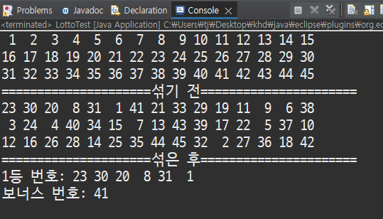 System.out.printf("\n보너스 번호: %2d" , lotto[6]);