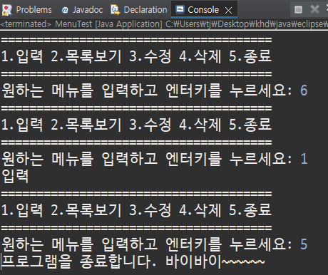 // 여기까지 왔다면 menu에 1 ~ 5사이의 정수가 입력되었다는 것을 의미한다.