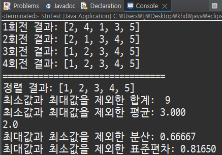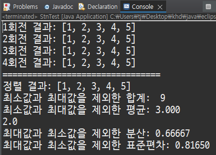 System.out.printf("최대값과 최소값을 제외한 표준편차: %7.5f\n" , std);